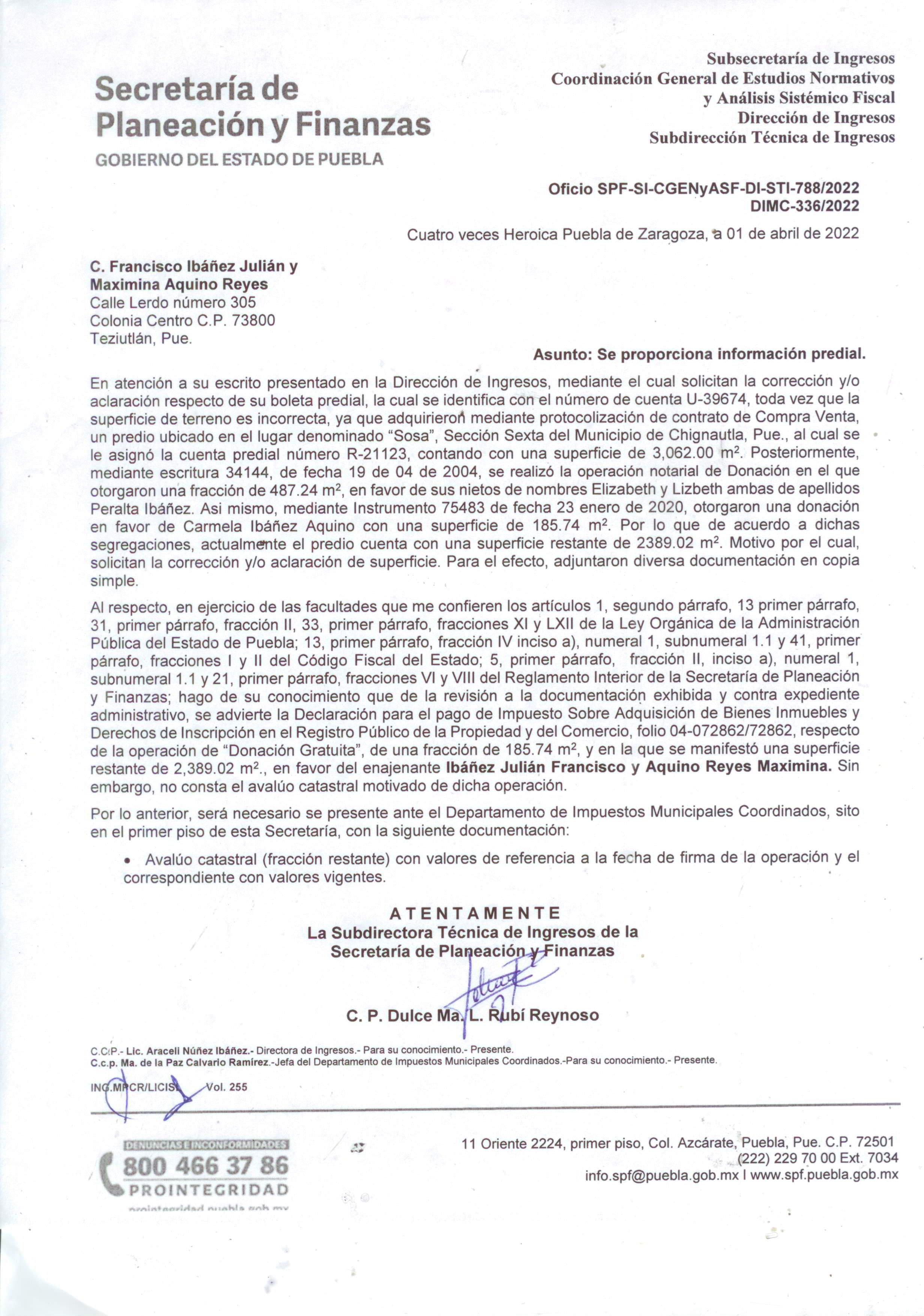 Oficio SPF-SI-CGENyASF-DI-STI-788/2022 DIMC