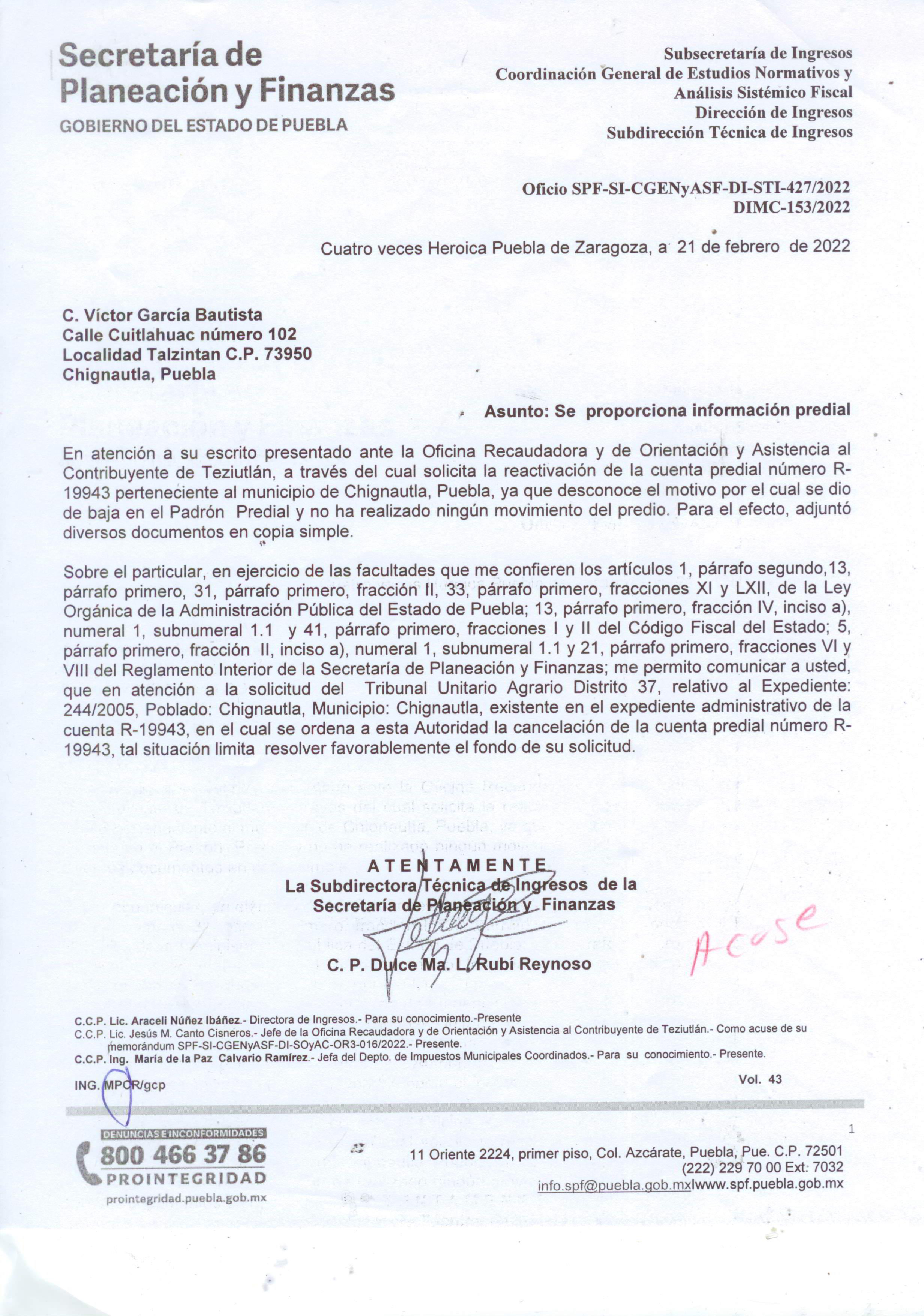Oficio SPF-SI-CGENyASF-DI-STI-427/2022 DIMC-153/2022